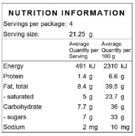 Allergy Advice: Contains Tree Nuts (Macadamias), Soy.