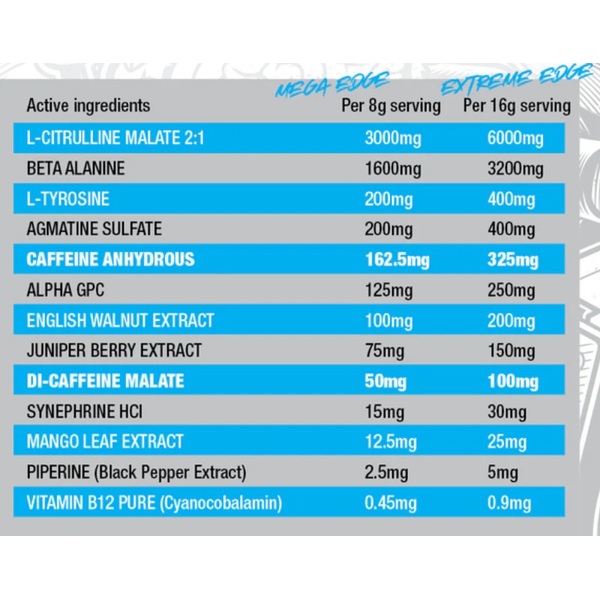 LEGIT EDGE PRE-WORKOUT has been formulated with your epic training goals in mind. Clinically dosed, Edge is designed to enhance your training experience through stimulating feel-good energy, brain function, insane pumps and long-lasting endurance to push you over the edge!!