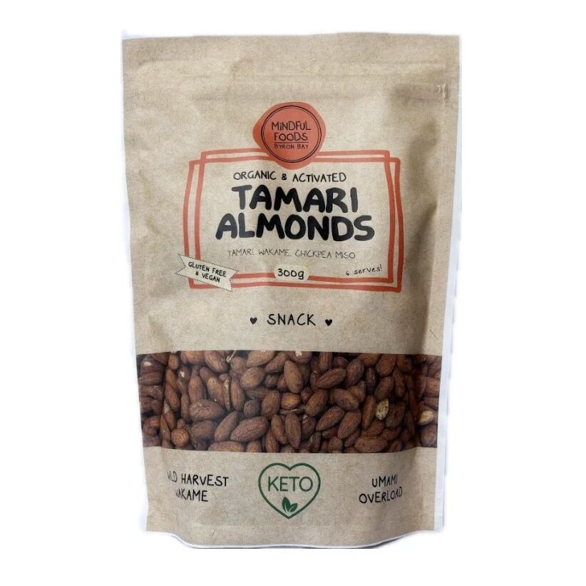 A timeless crowd favourite — Mindful Foods Tamari Almonds are slow-soaked and gently dried to activate the nutrients and create an unbeatable crispy crunch. Coated in organic tamari (naturally fermented soy sauce), they offer a deep, savoury richness and satisfying depth of flavour.