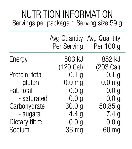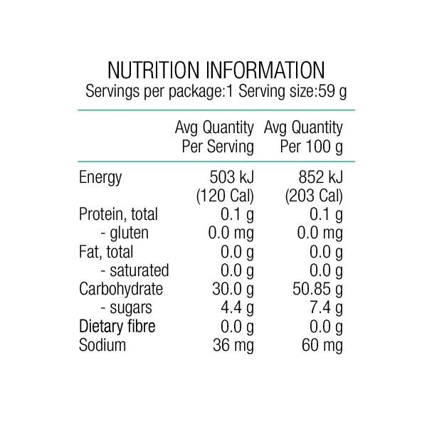 Maltodextrin, Filtered Water, Reconstituted Fruit (25%) (Apple Juice, Raspberry Puree (9%), Mineral Salt (Sodium Citrate), Preservatives (Potassium Sorbate, Sodium Benzoate), Antioxidant (Ascorbic Acid).